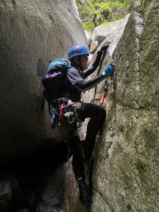 噂通りの美しい谷で水量多く、ほとんどの小滝が直登できるので登攀要素も高く、充実した沢行でした。
