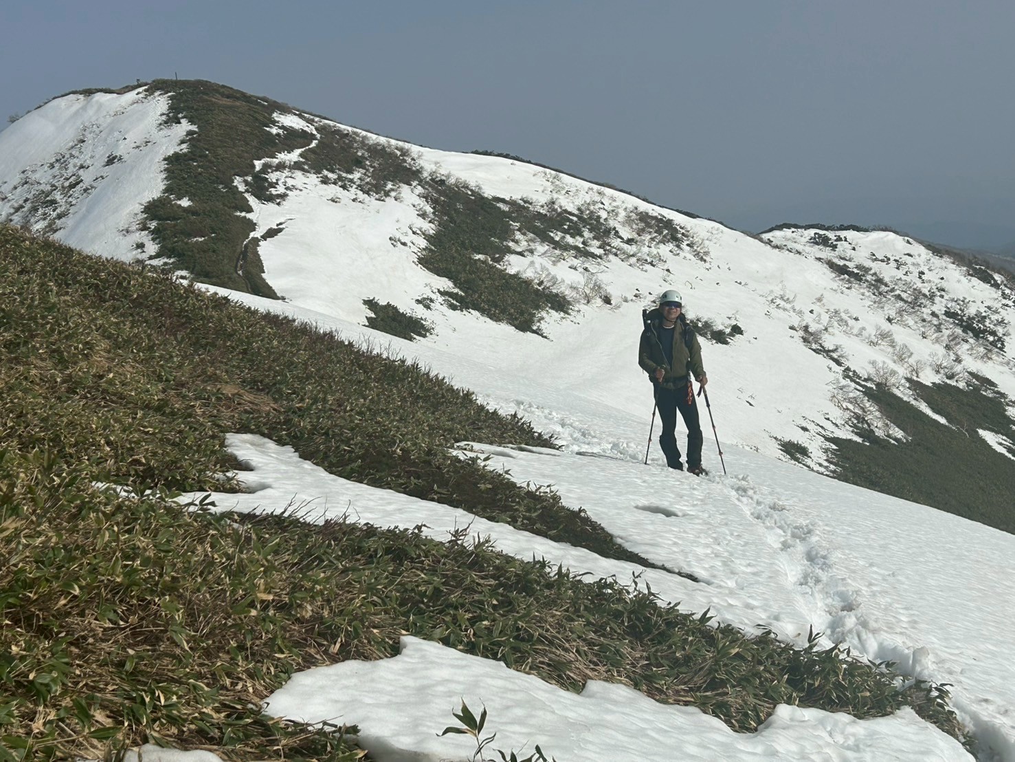 標高が上がるに連れて、目の前に次々と現れる雪と薮の斜面を眺めながら、ルート取りを考える。あそこの残雪の右は雪が剥がれそうだから、左の薮の脇を通って、その上の安定した雪壁に取り付けば抜けられる、とか考えるのが楽しかった。