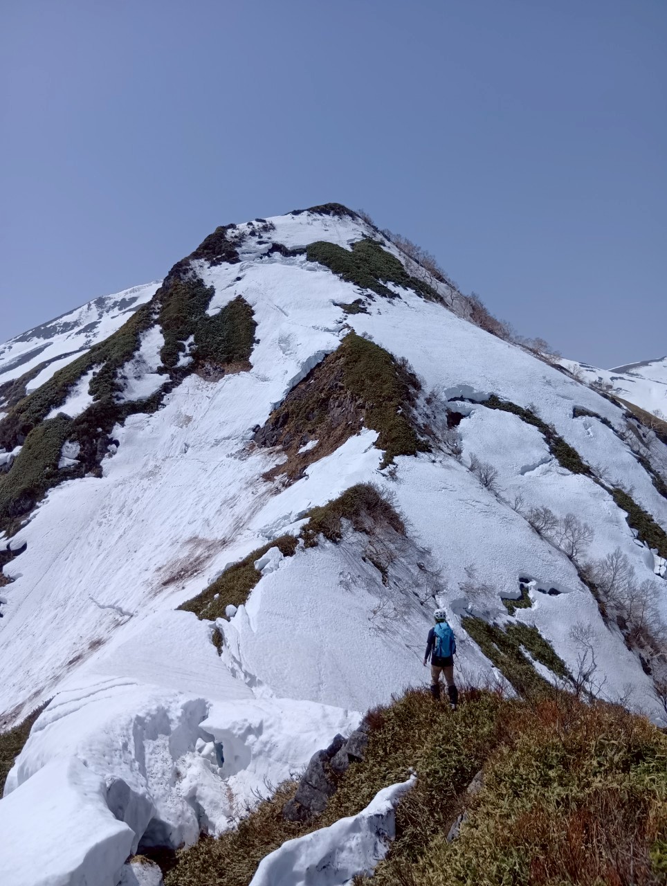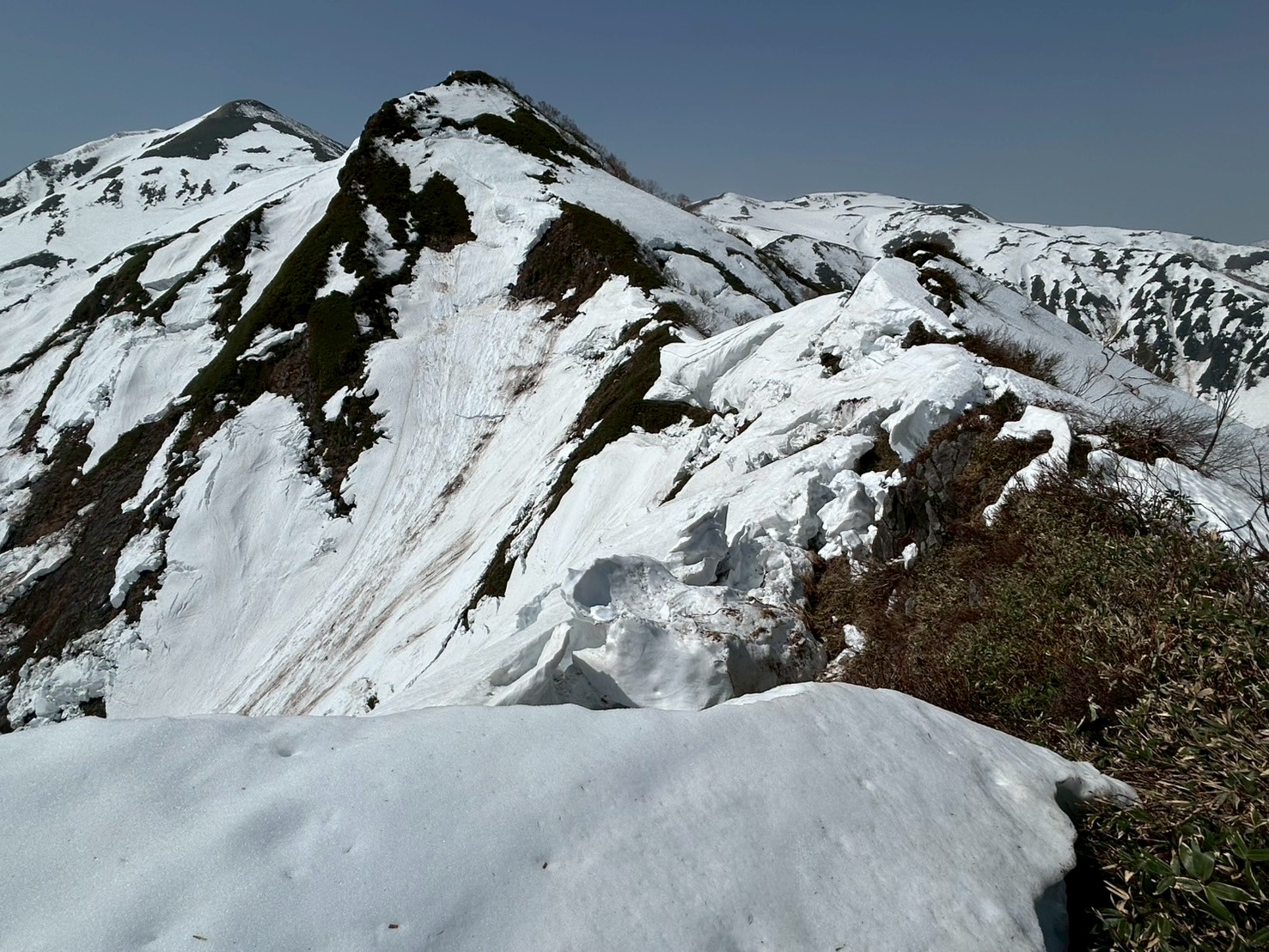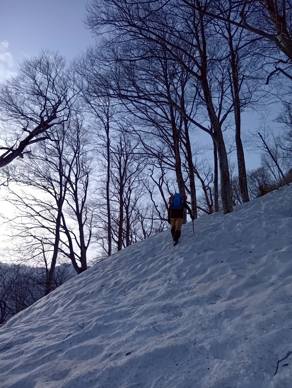 数年前に登った谷川岳東尾根を思いだすような、厳しくも充実感のある山行でした。あーさんと一緒にあの雪壁と薮を乗り越えられて、格別な達成感がありました。