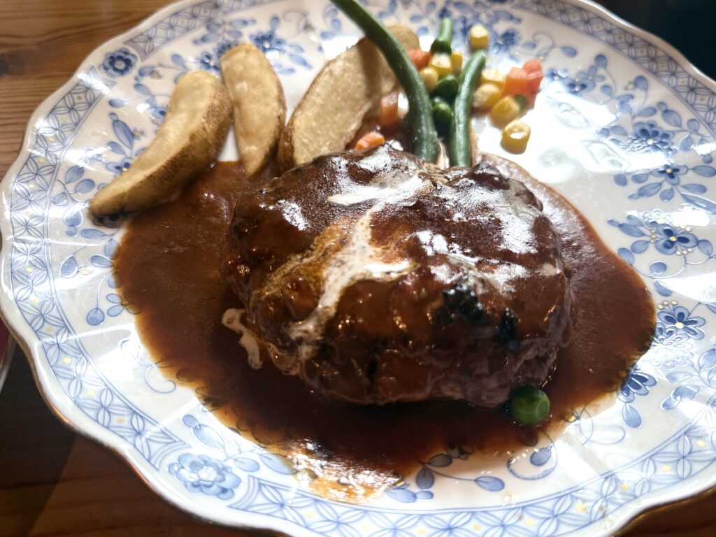 予報通りの雨のなか早めにテントを撤収し室堂バスターミナルへ到着。大町でゆっくり温泉につかり、最後は開店前から行列のできる地元野菜をふんだんに使った美味しいレストランでお勧めのハンバーグをいただき無事帰宅しました。
