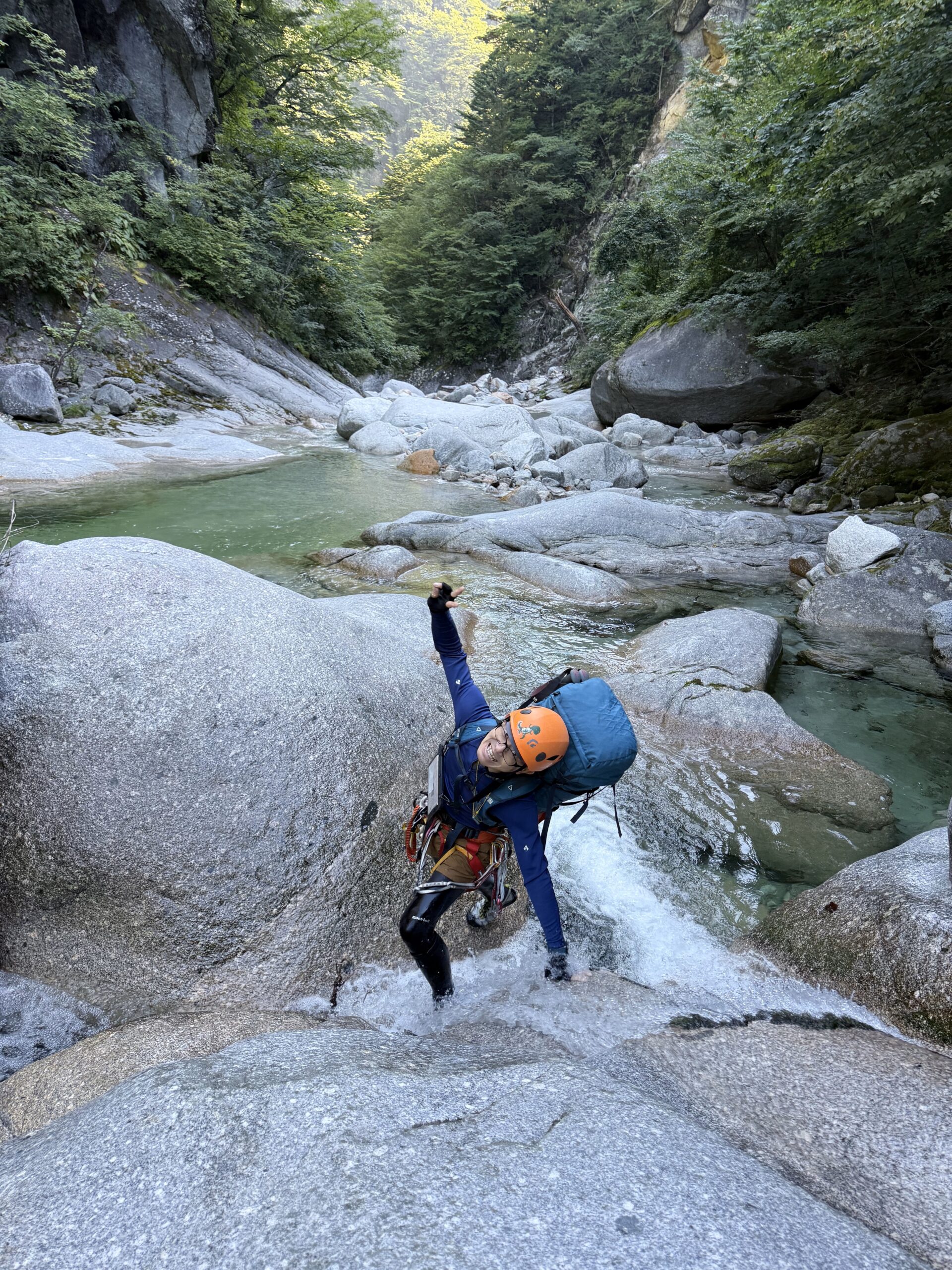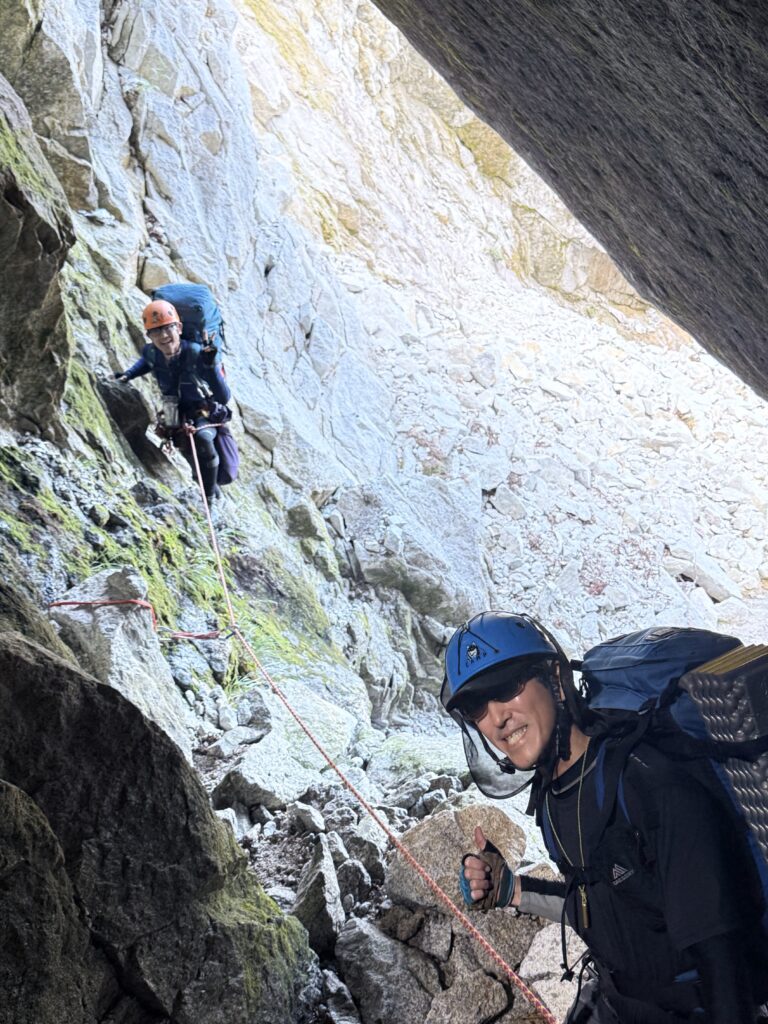 沢登りに加え、かなりヘビーなアルパイン登攀と、一粒で二度おいしい山行を経験でき、私自身も力が付いたような気がします。