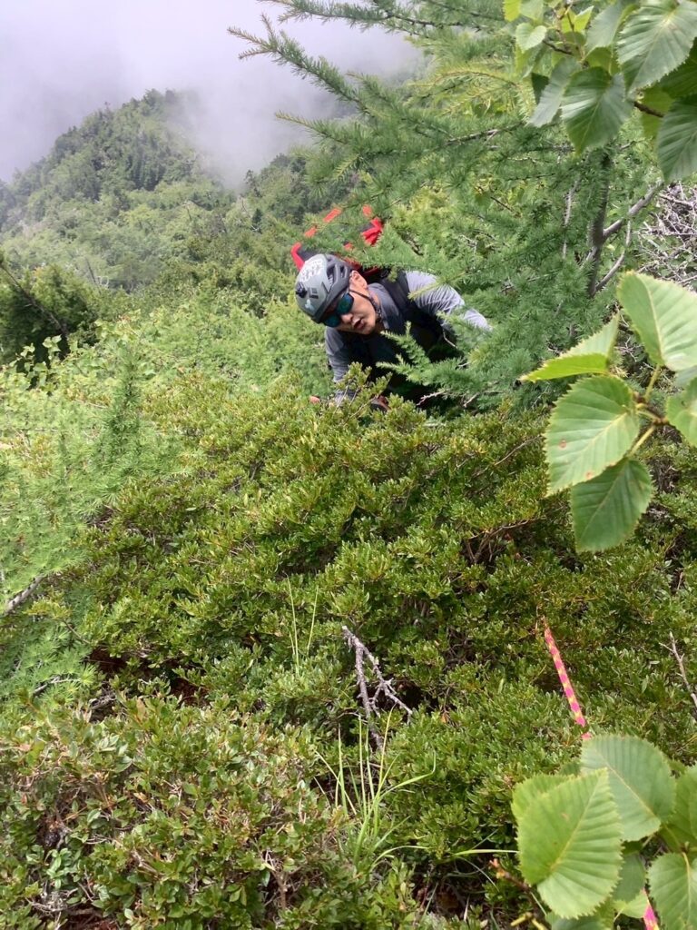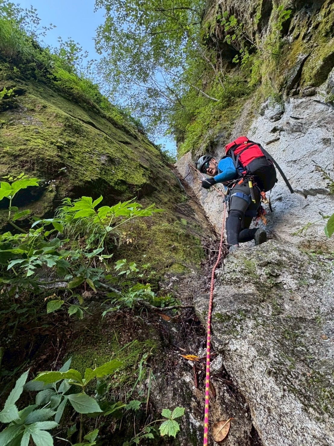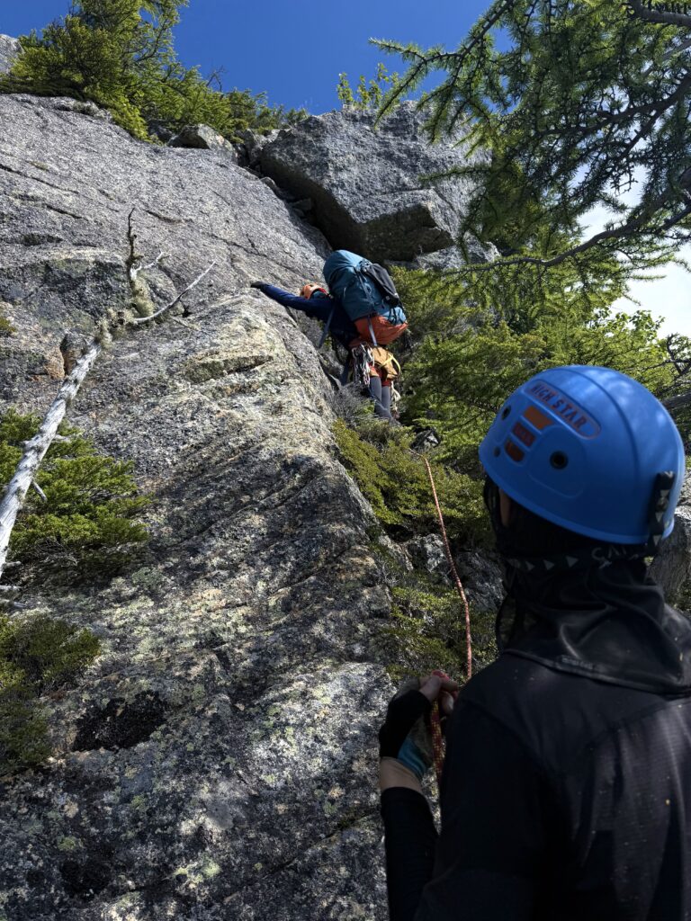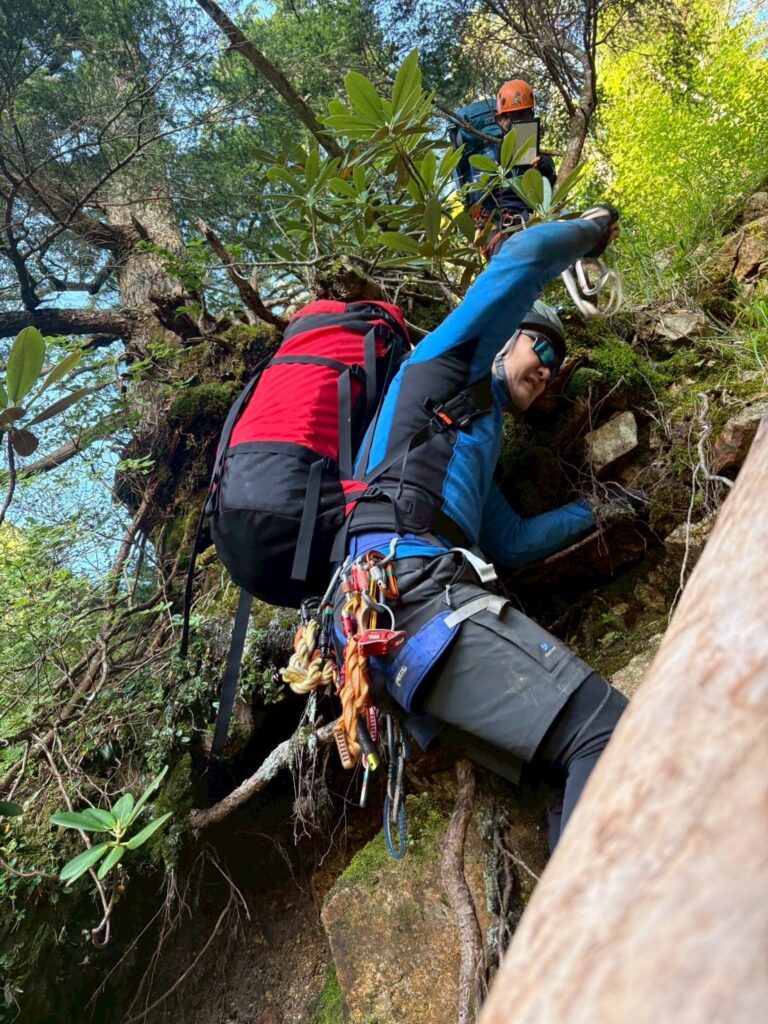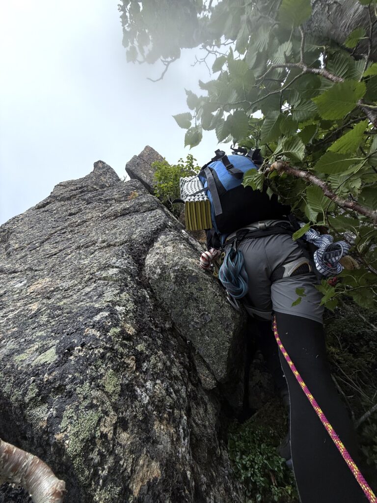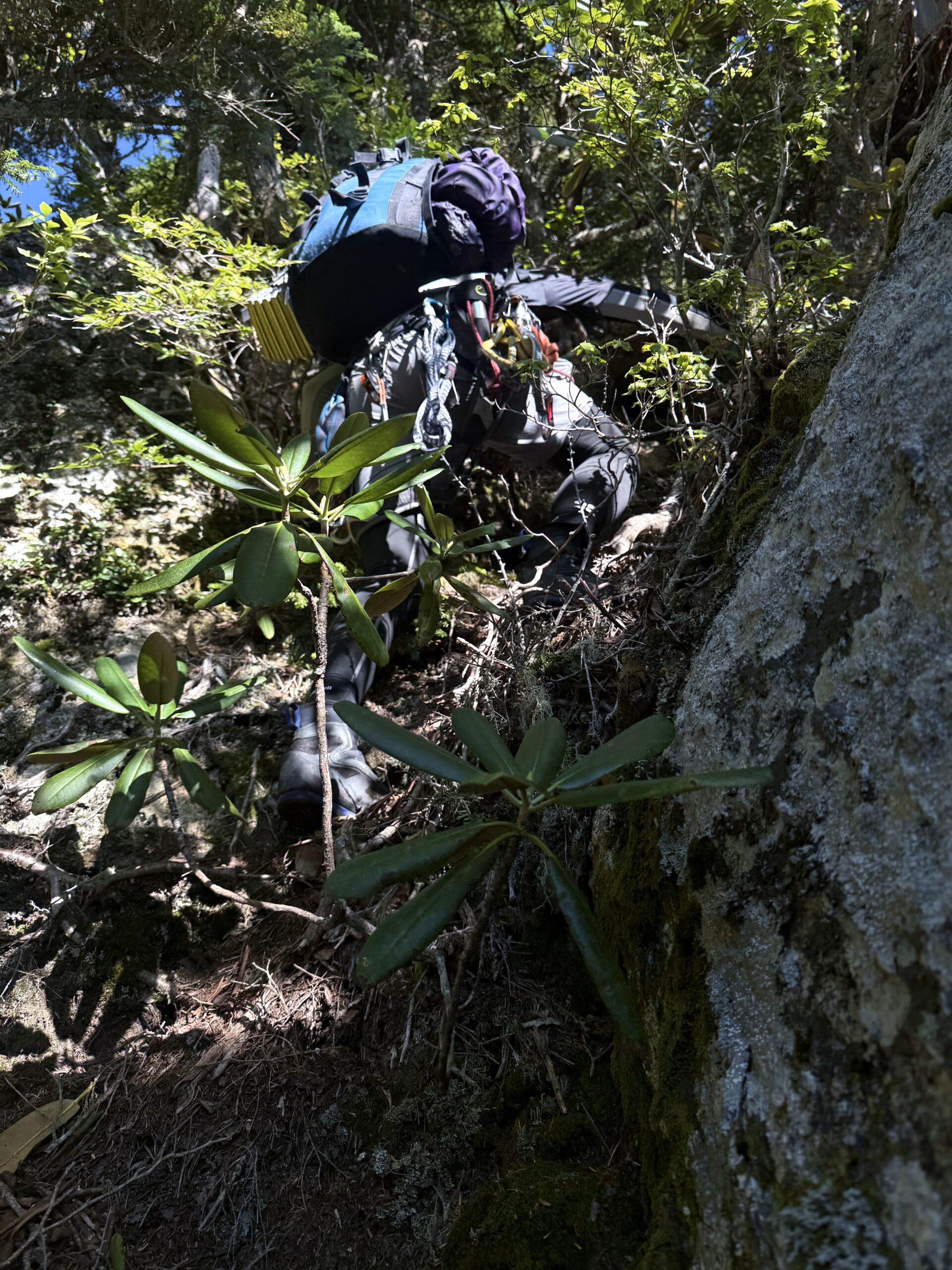 藪漕ぎだけなら良いものの、ロープを出してのアルパイン登攀の始まりです。