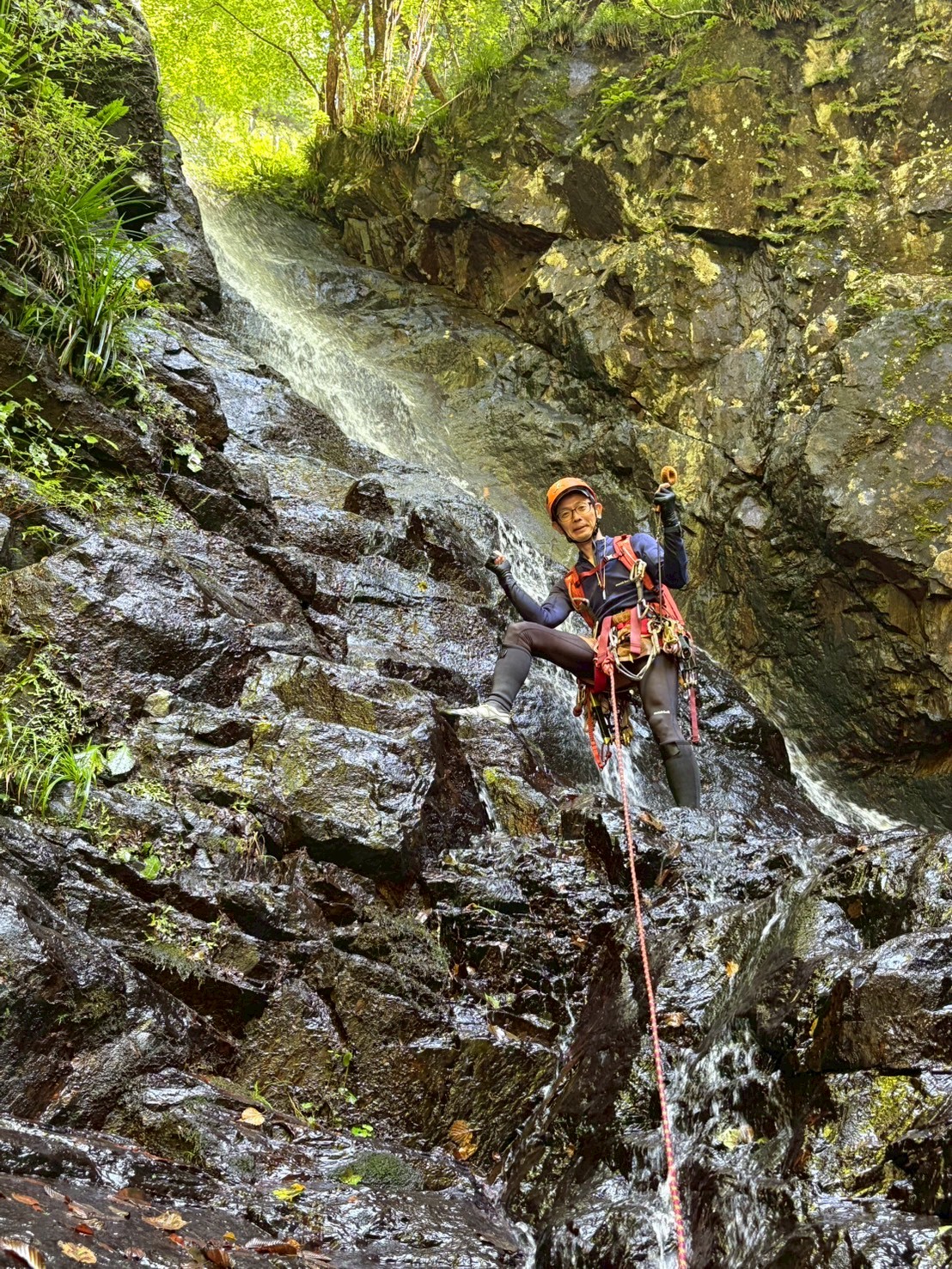 大滝(14m+4m)は、左からレイさんにリードをお願いして直登。ここもかなりシビレました。
