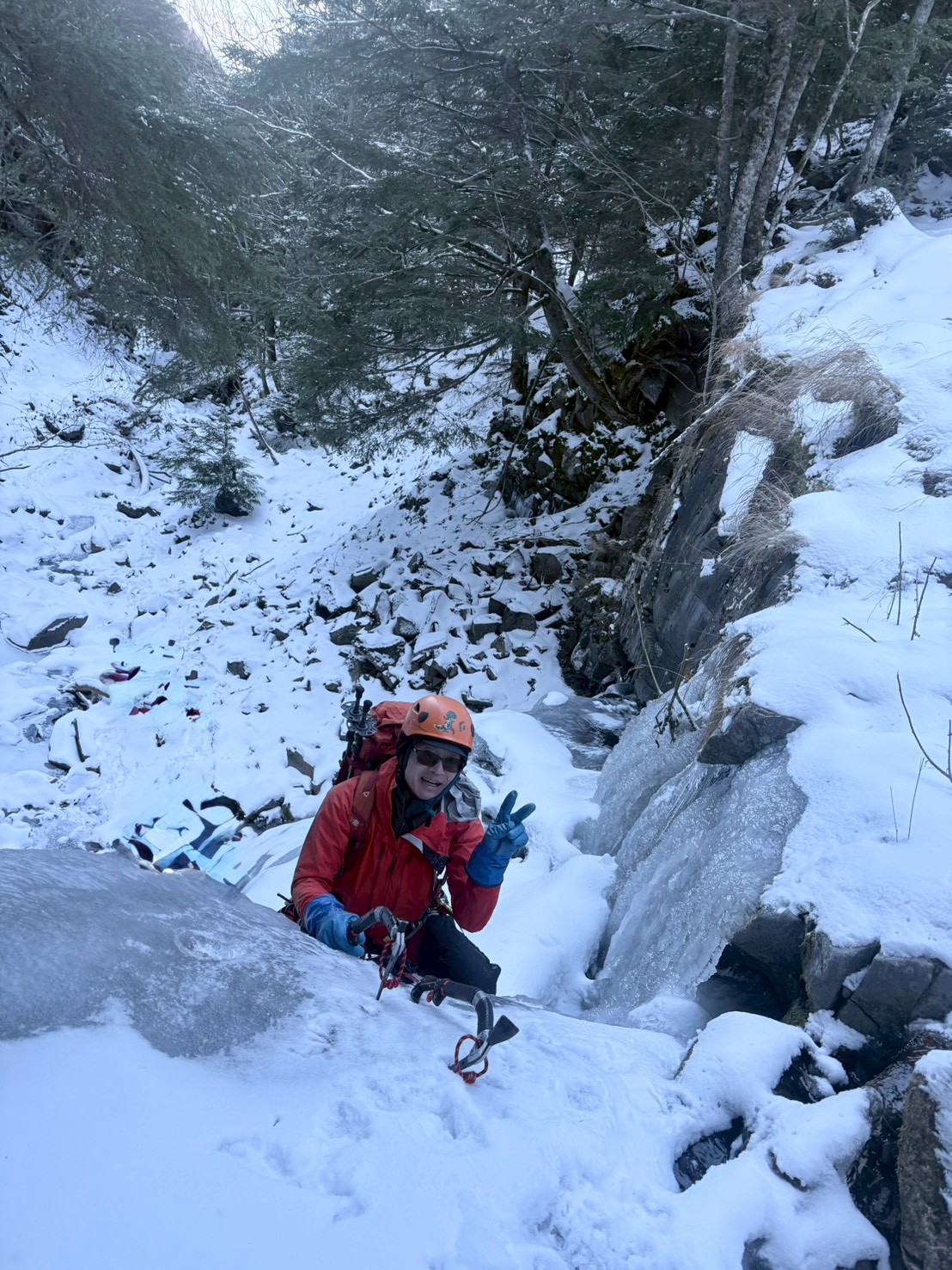 大滝の上で二俣に分かれ、右俣の氷瀑が面白そうだったが日が照ってしまいシャバシャバ⤵