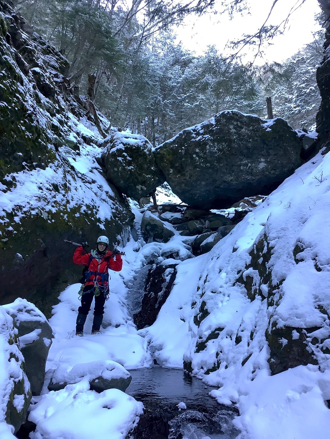 沢は凍っていない箇所が所々あるのだが、数日前の降雪で隠れている