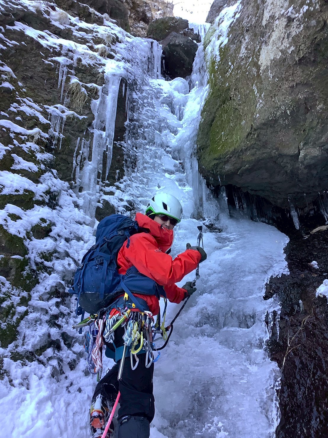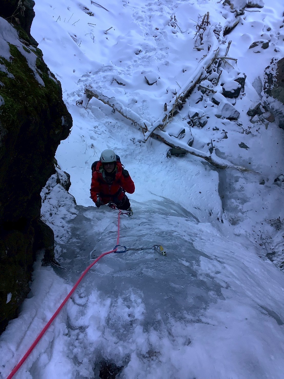 1~3ルンゼ分岐手前の氷瀑はコッシーリード