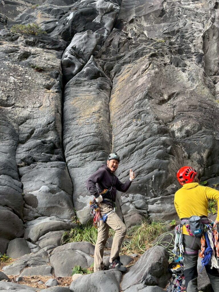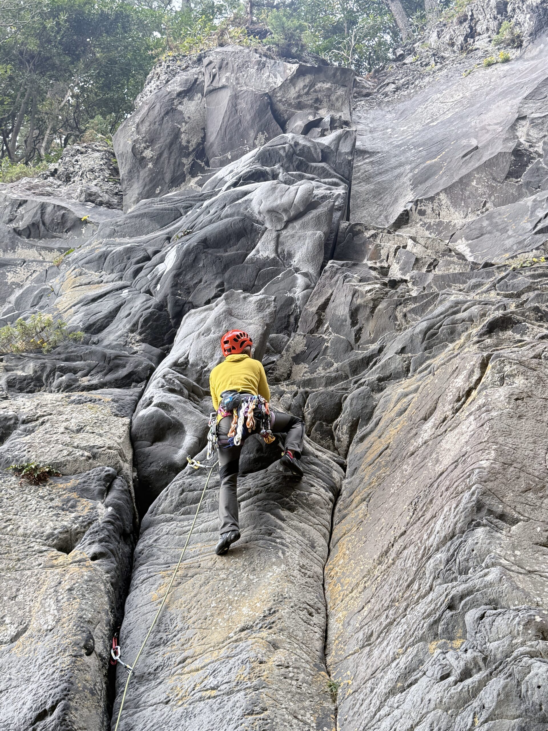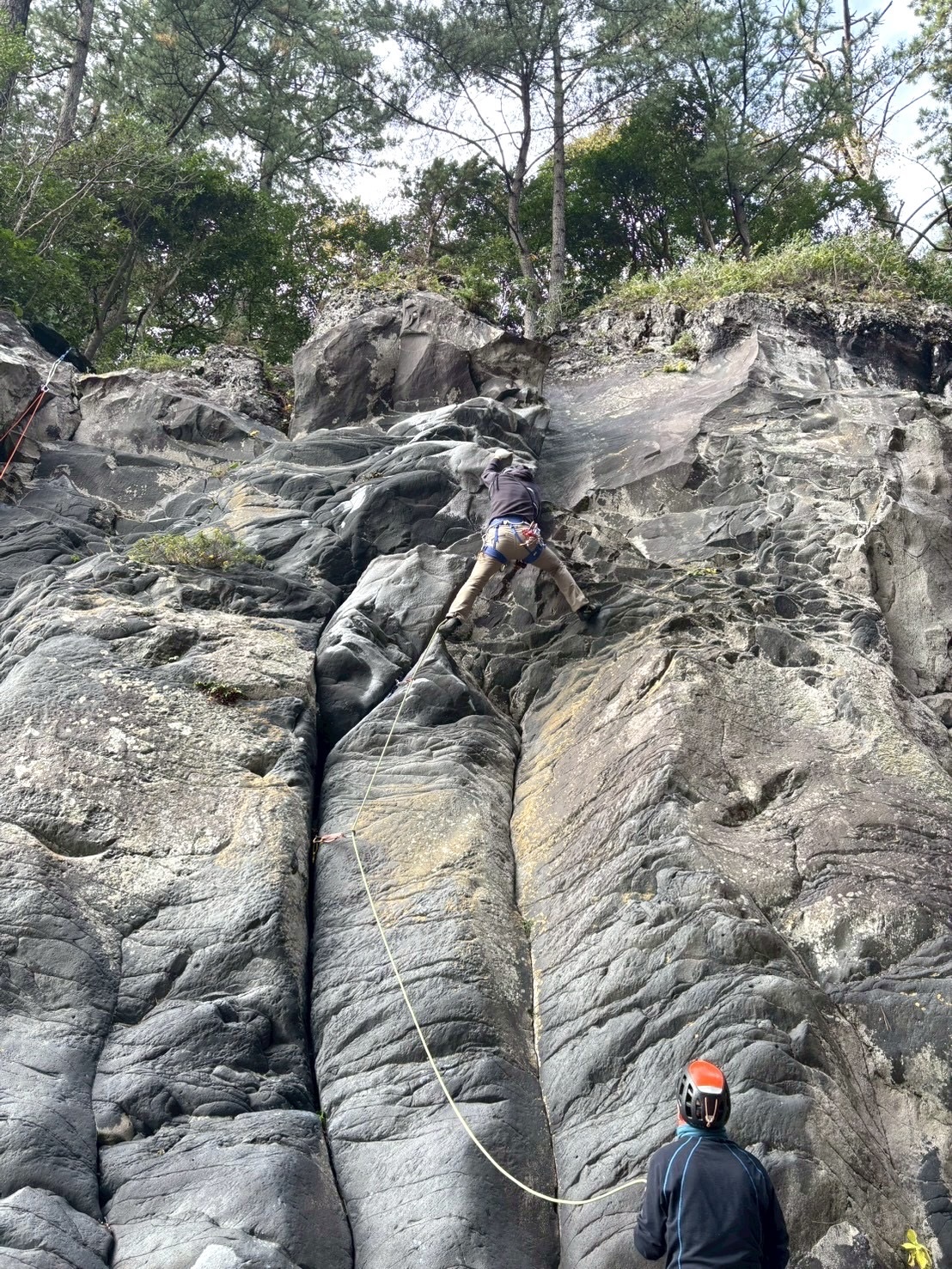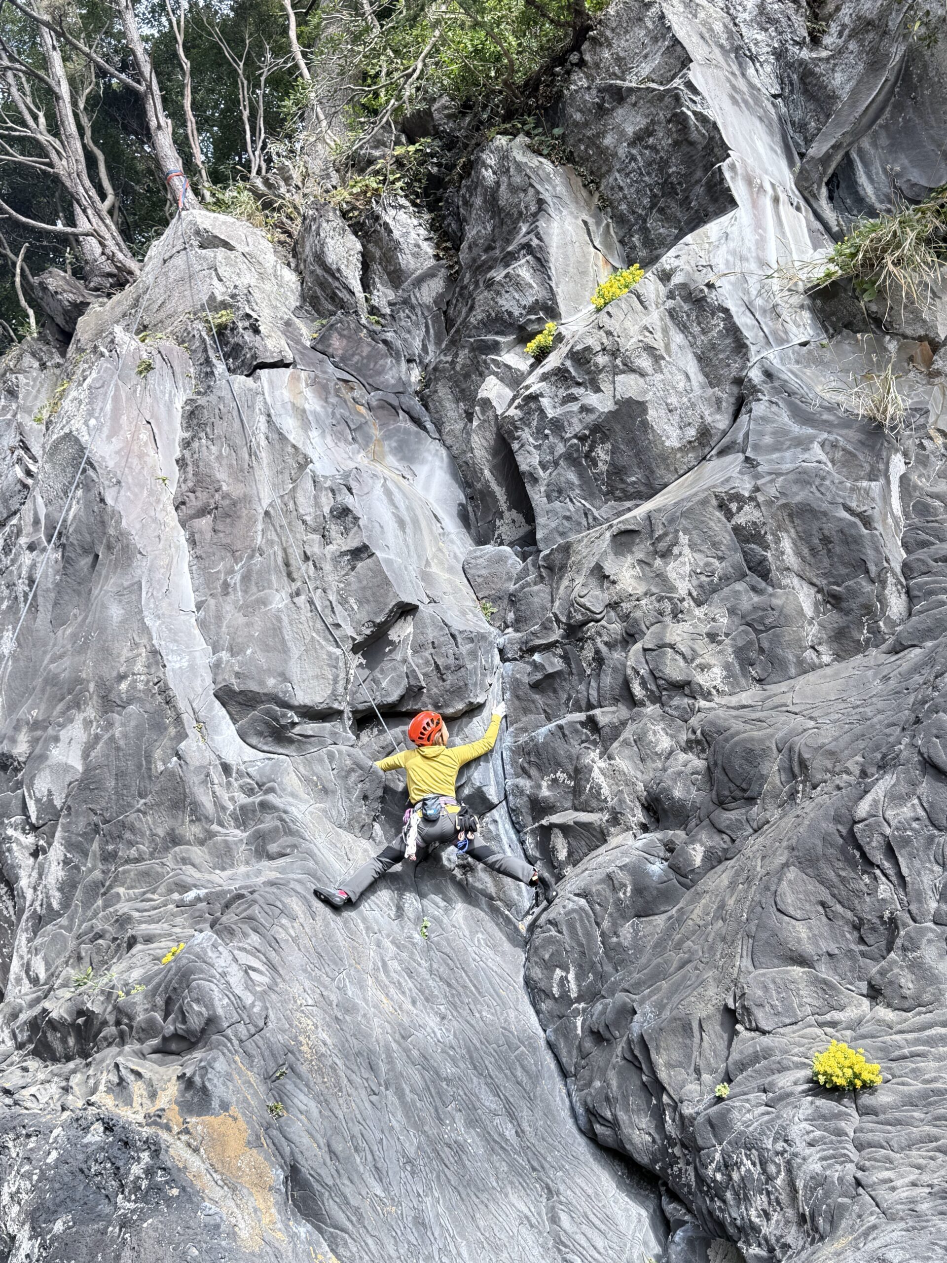 今回の課題は前回TRでクリアしている「ベビークラック5.8」をリード登攀すること。甘える2人に対しHさんUさんから「え?いかないの?行けるでしょ!」と背中を押して頂き何とか突破!