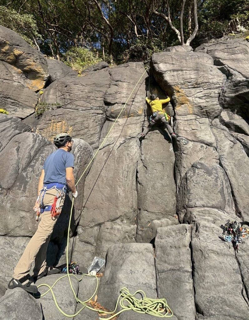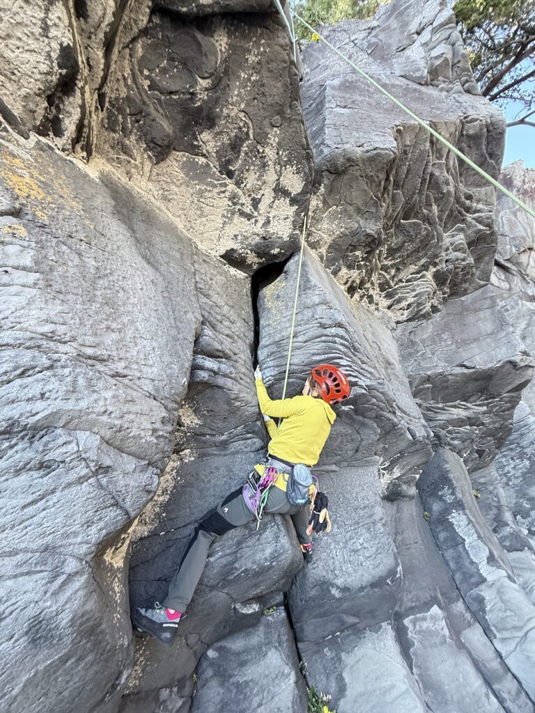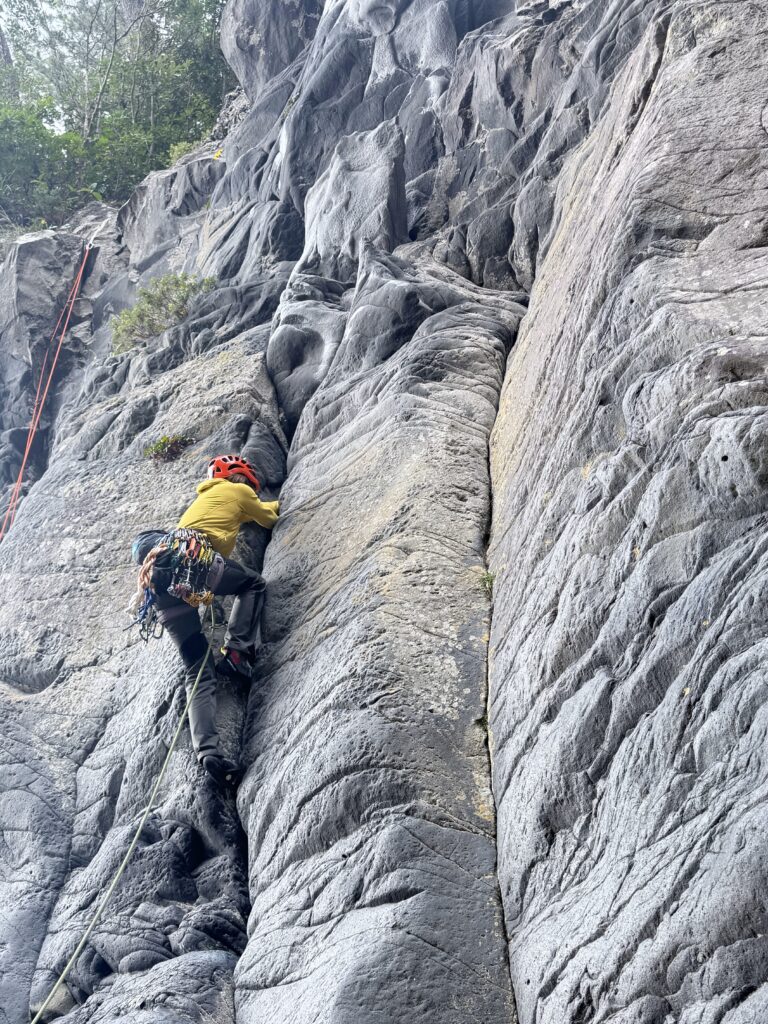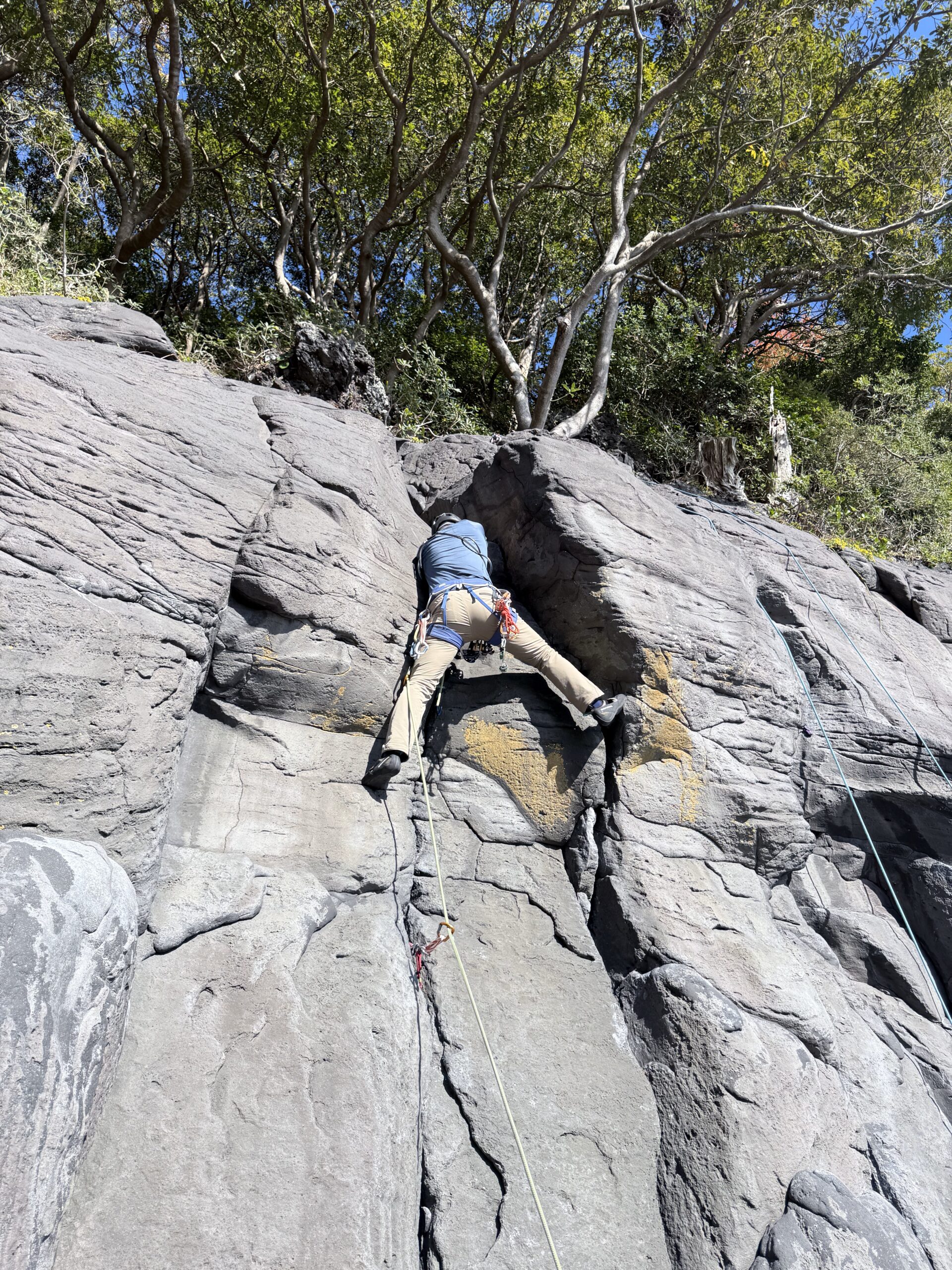 今回の課題は前回TRでクリアしている「ベビークラック5.8」をリード登攀すること。甘える2人に対しHさんUさんから「え?いかないの?行けるでしょ!」と背中を押して頂き何とか突破!