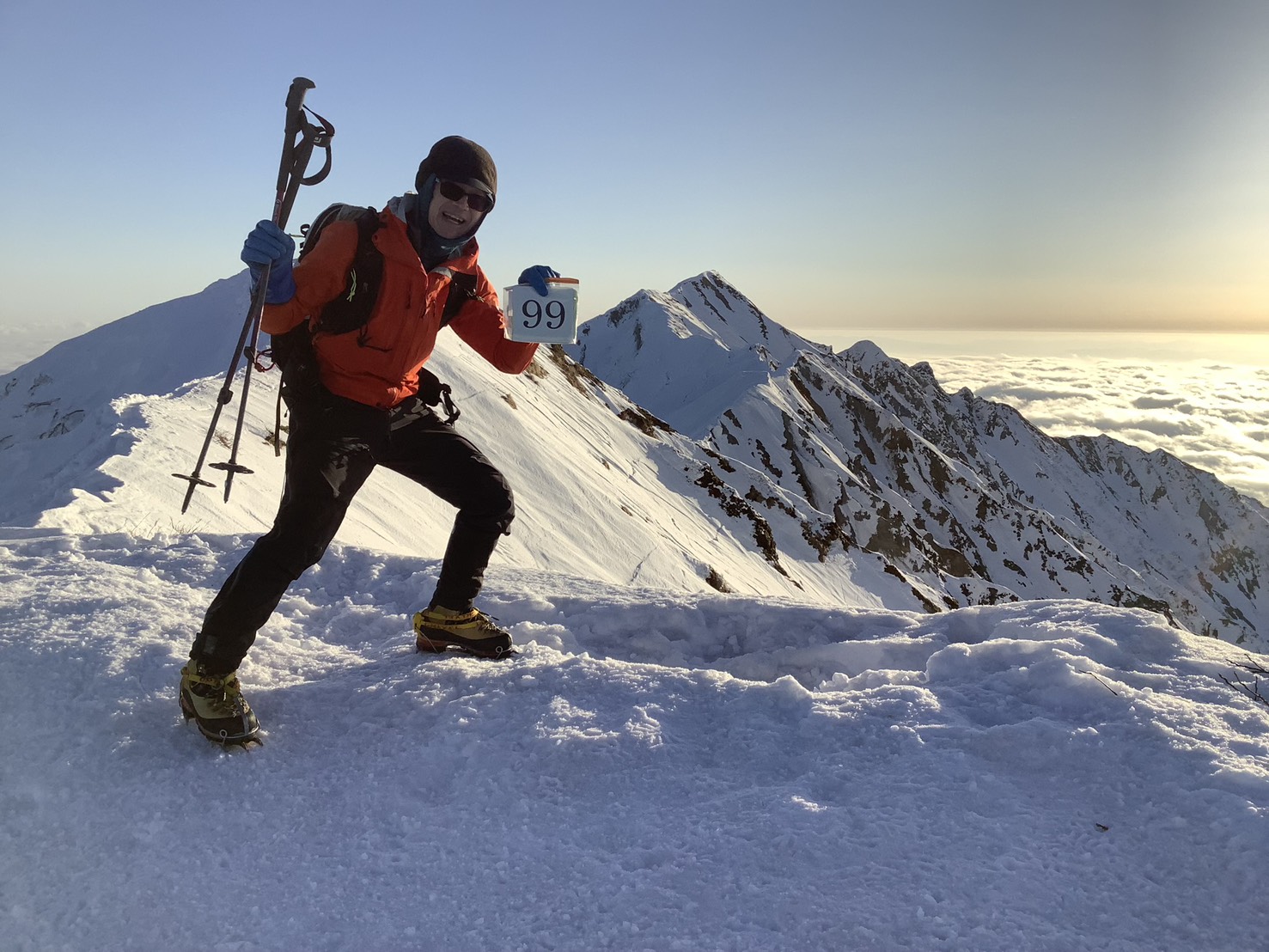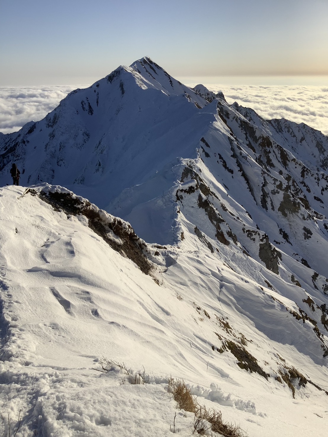 風は穏やかで雪のコンディションも良かったので、剣ヶ峰をピストンしてから下山