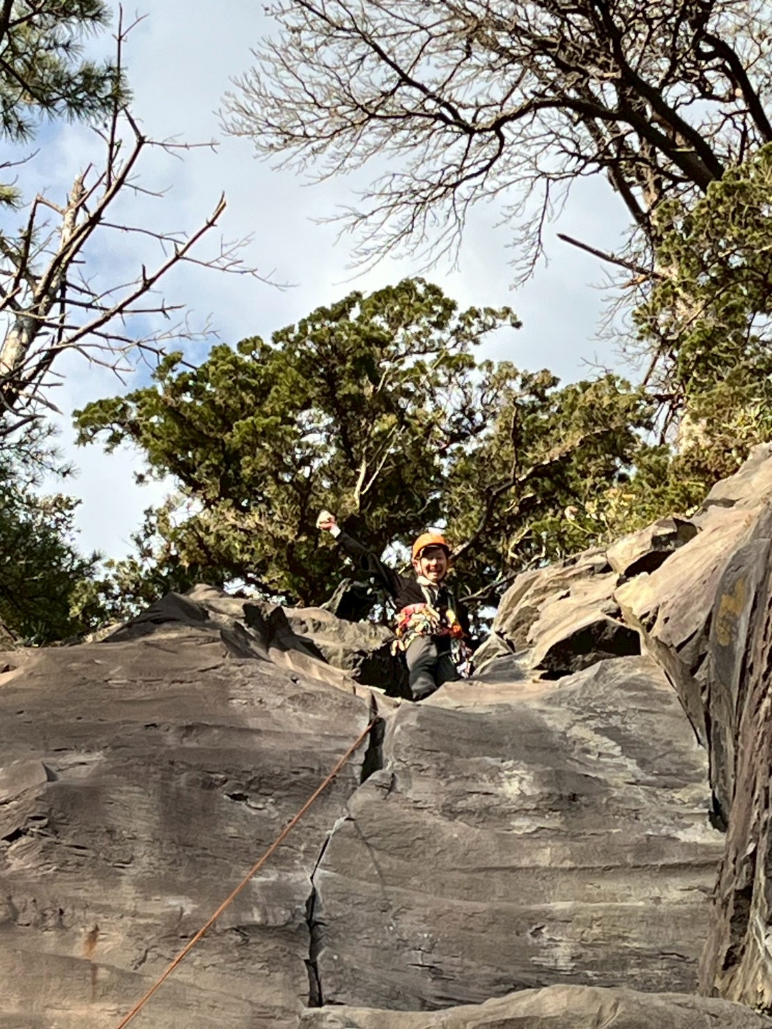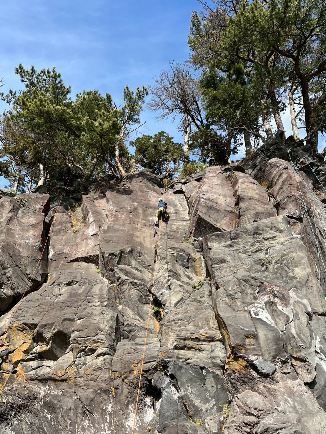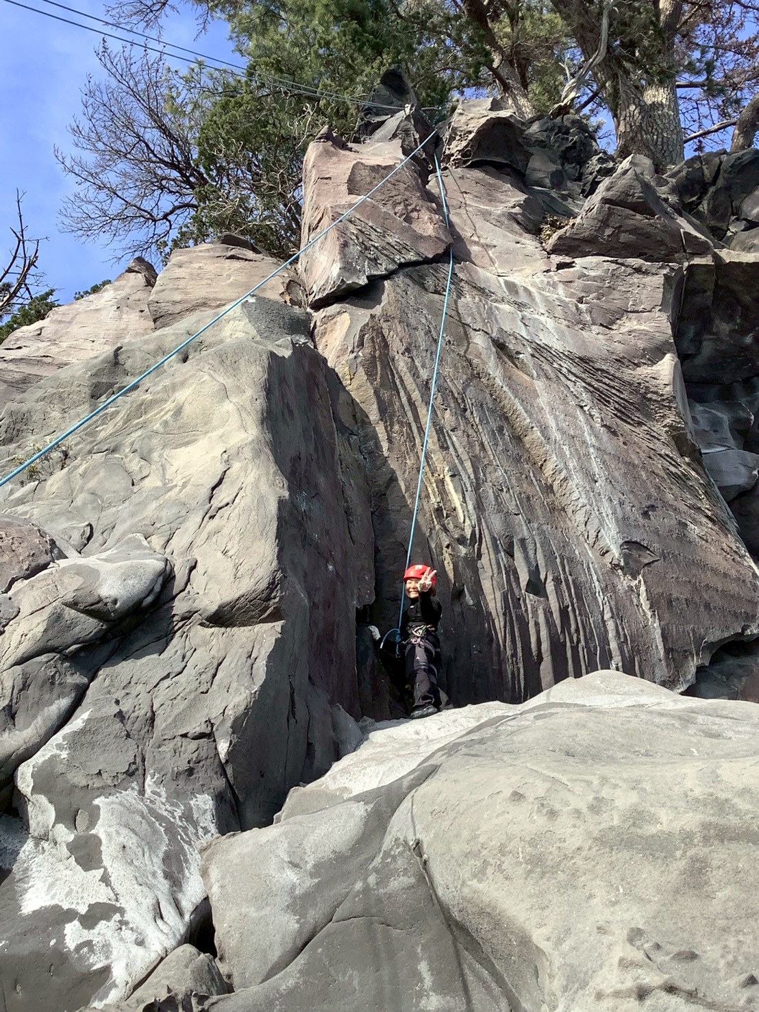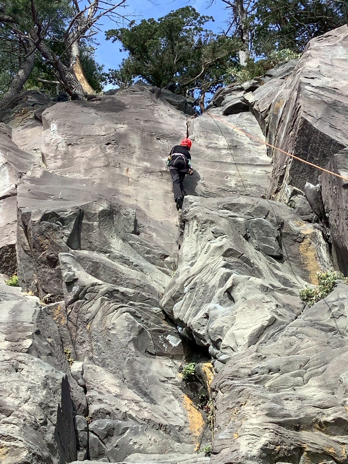 今回も先輩方のお手本の攀りを確り見せていただき恐れ慄き、トップロープなのにプルプルしてしまいましたが「いいぞ、いいぞ〜」「ガンバ、ガンバ〜」と励ましのお陰で楽しく攀らせていただきました。