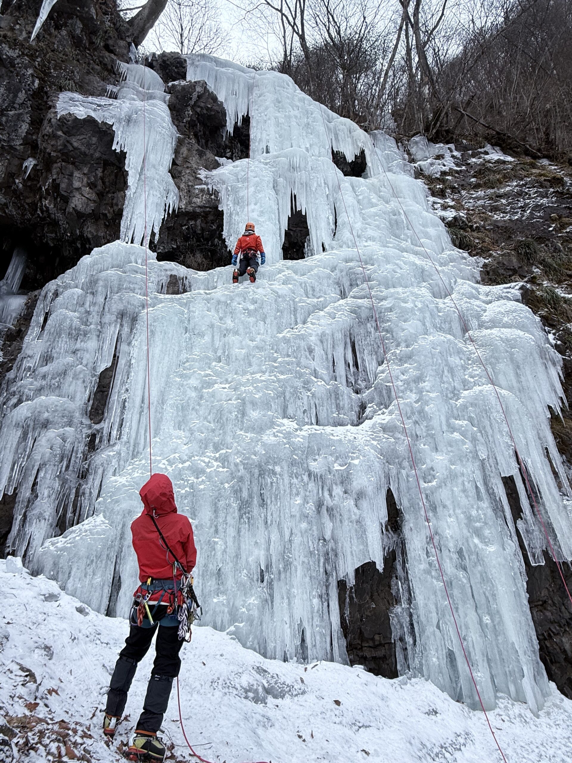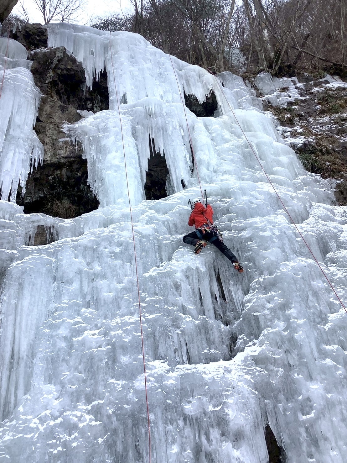 エイプリルフールは、レイさんがリードでアタック。支点構築し、2本のロープをセットしてくれたおかげで、3人が交代しながら3セットを登ることができ、思う存分アイスを楽しめました。