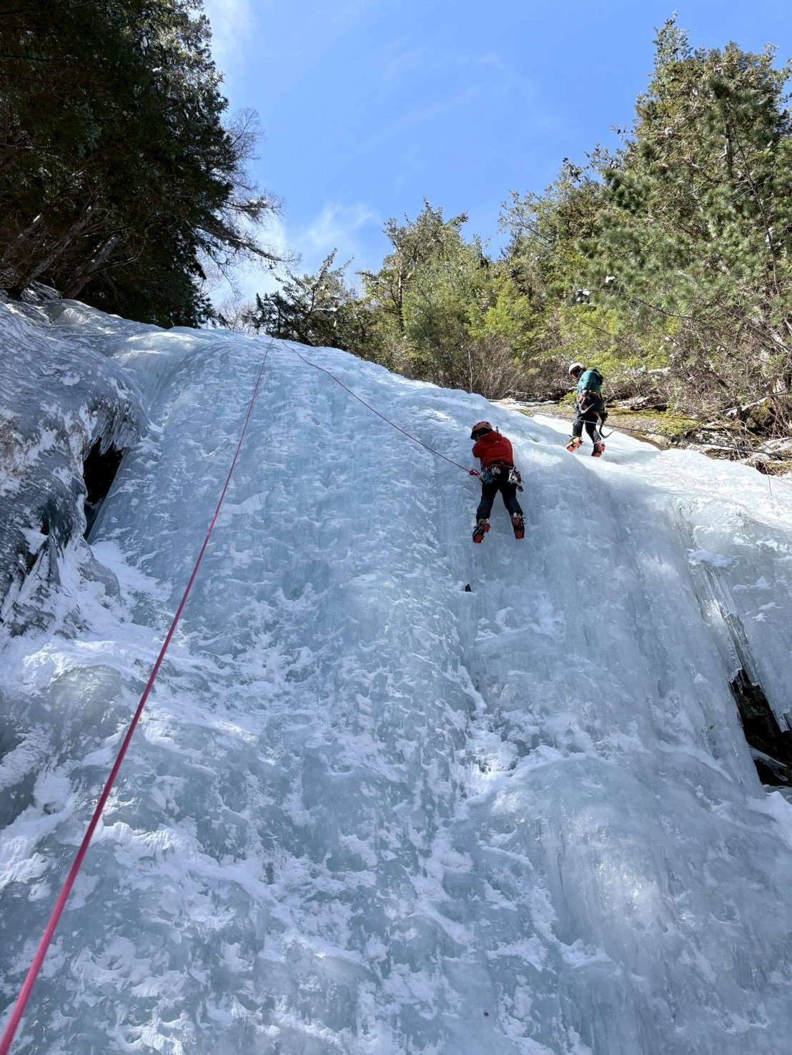 この滝は2段・2Pのマルチができるので、アルパイン感もあり楽しめます。また、壁が結構立っているので登りこたえもあります。