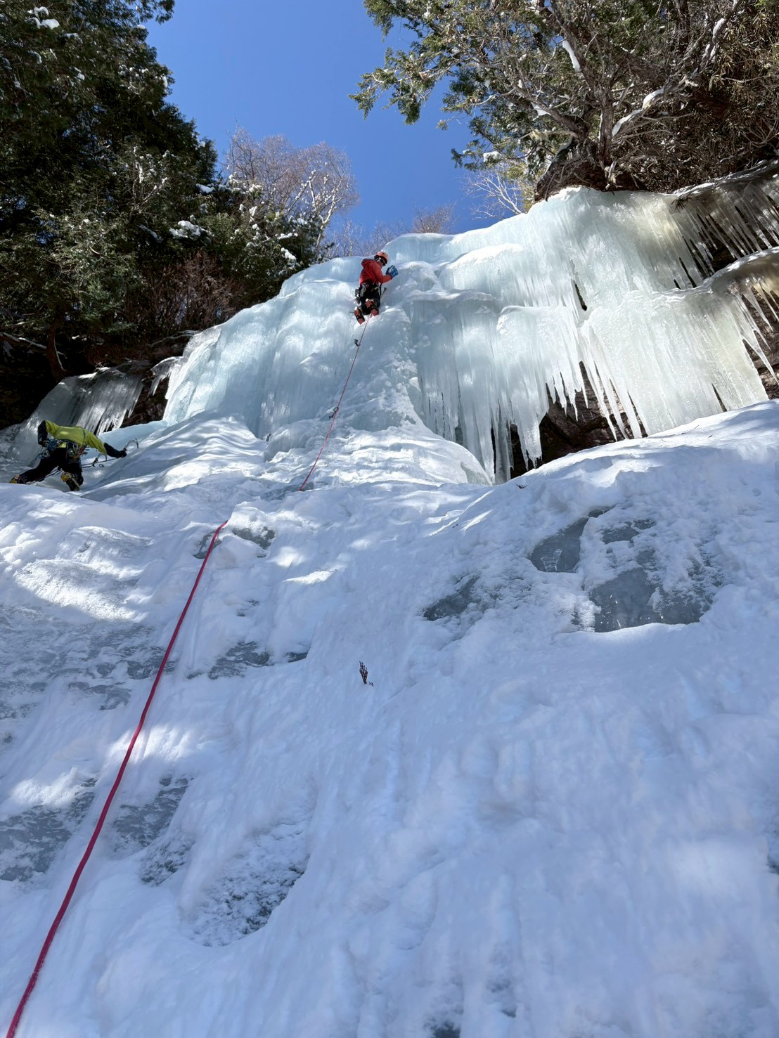 この滝は2段・2Pのマルチができるので、アルパイン感もあり楽しめます。また、壁が結構立っているので登りこたえもあります。