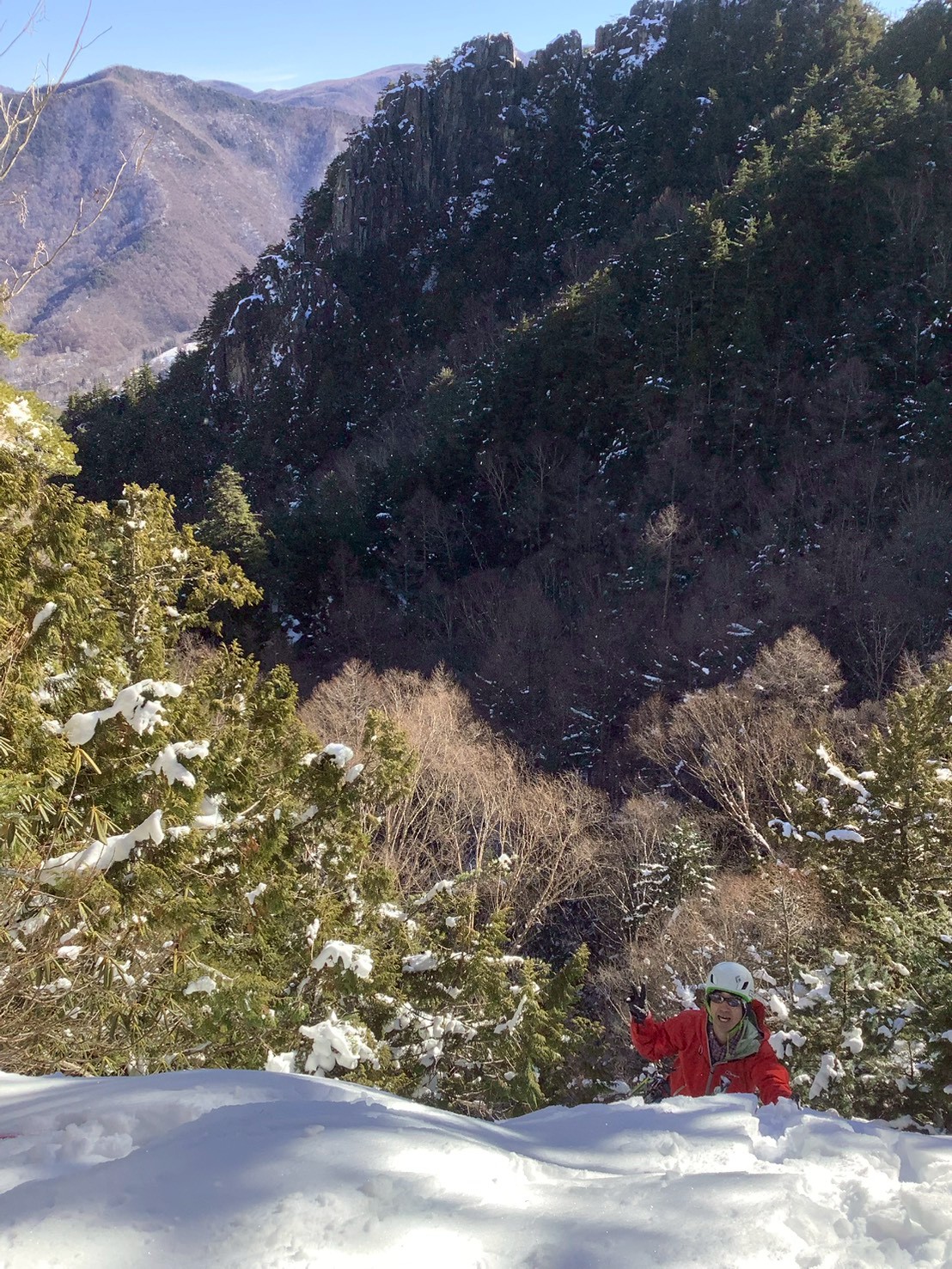 2月中旬だというのに、この日の気温は東京で18度。これでは、せっかく氷結した滝が溶けてしまうではないですか。という状態の中、レイさんが見つけてくれた唐沢の滝へレッツゴー!