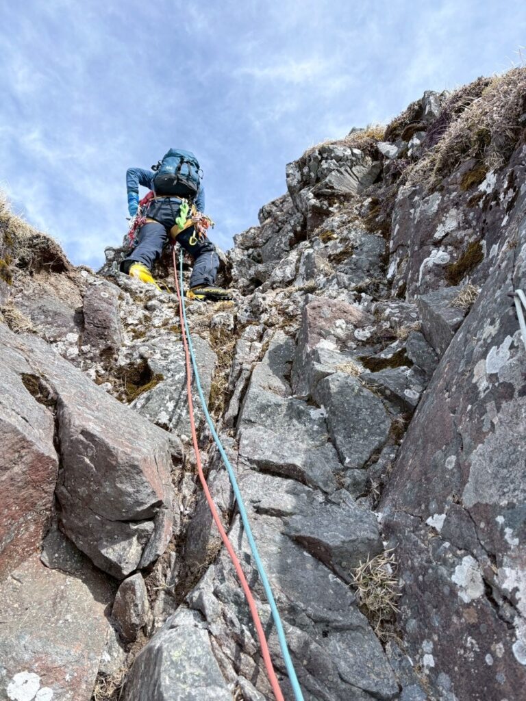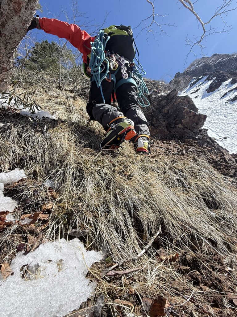 ⚫︎アプローチは急登で下部岩壁の末端でビレイ