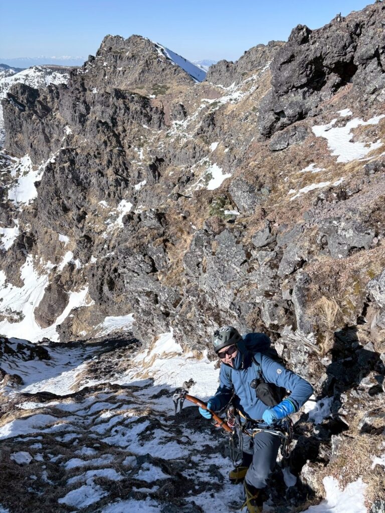 石尊稜は、全体的に余裕を持ってクライミングができたのは、良かったです。新人育成の場には、打ってつけのアルパインルートではないでしょうか。