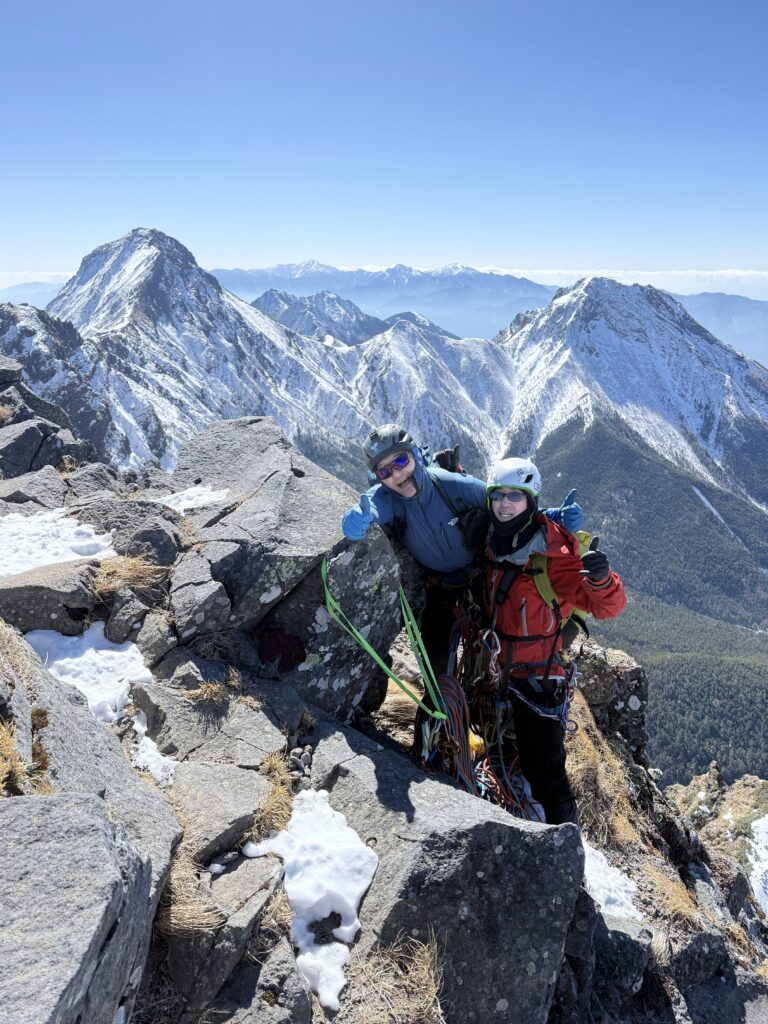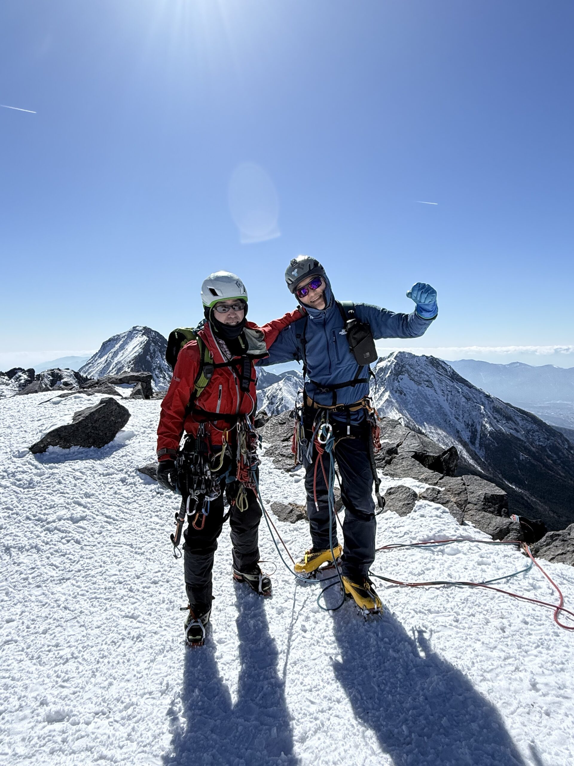 今回はお互い2Pずつリードし横岳山頂へ詰め上げます。 (たまたまそこにコッシーの知り合いがいらして写真を撮っていただきました…ありがとうございました!)